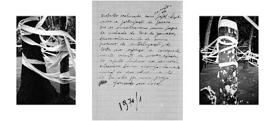 obra encontrada em Viana. Uma pequena pedra recoberta por pontos bastante brilhantes; sendo que, também recolhida na maré baixa na praia de Valadares a 17.7.75, essa pequena pedra esteve durante 5 dias e 5 noites na varanda de uma pequena casa de madeira. Uma corda de cânhamo estendida ao longo da tábua, amarrada: à pequena pedra brilhante, a um pau transversal de uns 35cm e a um pedaço de arame de 10cm; na outra extremidade há um embrulho contendo pedaços de peixe, cedidos por uma vendedora de pescado. Cravada no embrulho de peixe, uma pódoa (comprada na Feira de Espinho a 8km de Valadares) semi-encoberta de cânhamo, sendo o punho estrelado de pregos.